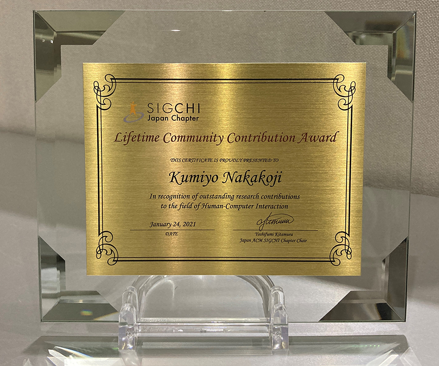 中小路 久美代教授(情報アーキテクチャ学科)が第1回Japan ACM SIGCHI Chapter Awardで、Lifetime Community Contribution Award(功績賞)を受賞しました。Lifetime Community Contribution Award (功績賞)とは、人と情報技術の関わりに関する学問技術の発展を図る目的で当該分野の発展に資する多大な貢献を行った個人を顕彰するものです。2020年度 2020 に創設され、今回が第1回目となります。人と情報技術の相互作用に関する学術分野(ヒューマン・コンピュータ・インタラクション)の研究分野で、知的創造作業のためのナレッジインタラクションデザインの領域において国内外で高い評価を受け、また国内においては長年に渡る当該分野の発展と、若手研究者や女性研究者に多大な影響を与え続けたことが高く評価されました。なお、同時に優秀若手研究者賞を受賞した坂本 大介氏(北海道大学 准教授)は、公立はこだて未来大の第1期卒業生です。