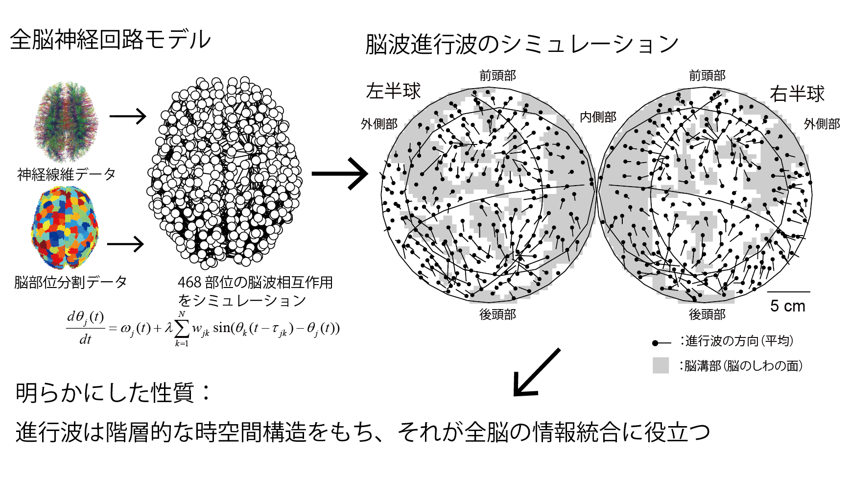 公立はこだて未来大学の佐藤直行教授は、ヒト全脳神経回路データを用いた脳波活動のシミュレーションを行い、大域脳機能回路のまとまりを作り、また、大域及び局所スケールの脳の活動度に応じて脳部位間を順序づけするのに役立つことを発見しました。