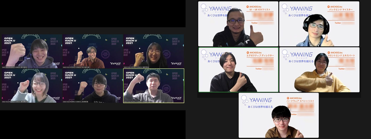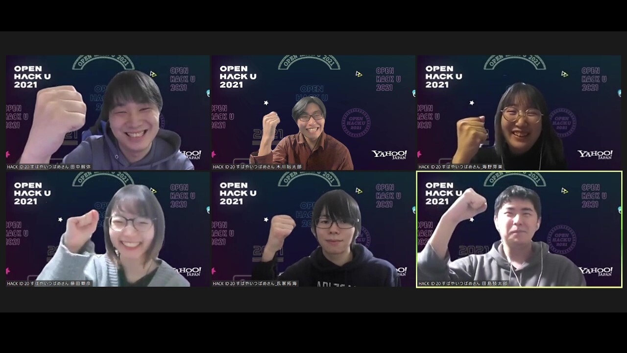 2022年2月28日(月)から3月11日(土)にかけて、Open Hack U 2021がオンライン開催され、公立はこだて未来大学の学生チーム「すばやいつばめさん」が開発した「笑撃」、同じく公立はこだて未来大学の学生チームである「よわよわ」が開発した「Yawning」がHappy Hacking賞を同時受賞しました。