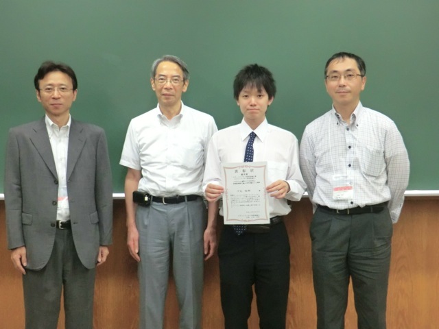最優秀賞1件、優秀賞4件が選出される中で、仲尾君の応募した「クラウド上の情報サービスを活用する訓練機能を備えた防災情報サーバの構築」が優秀賞の1つに選ばれました。