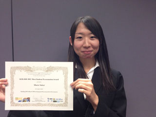 平成24年11月20日から24日まで神戸コンベンションセンターで開かれたThe 6th International Conference on Soft Computing and Intelligent Systems/The 13th International Symposium on Advanced Intelligent Systems (SCIS-ISIS 2012) で口頭発表をした博士(前期)課程1年生の坂井麻里恵さんがBest Student Presentation Award を受賞しました.
