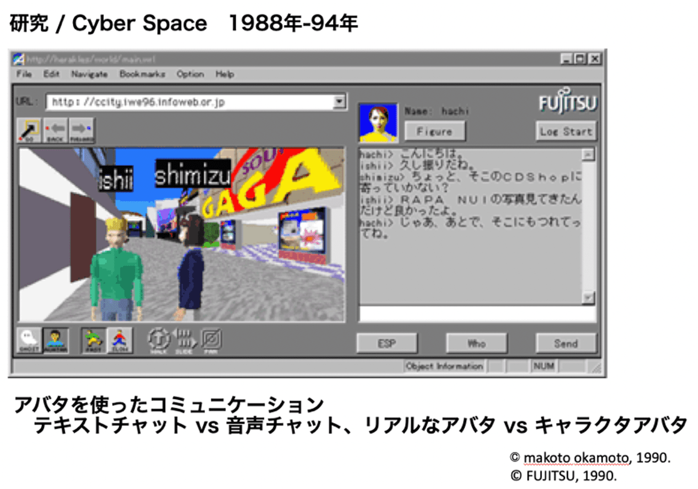 その頃はユーザインタフェース(UI)の開発もまだ黎明期。配属されたデザイン部のデザイナは、全てプロダクトデザイナでした。新人3人でUIの勉強会をして、UIの小さな部門を作ってもらいました。今では当たり前に使われているデスクトップのアイコンをデザインすることから始め、さまざまなソフトのUIをデザインしました。またネットワーク上の仮想空間でアバターを介して会話やゲームができる「Cyber Space」を企画・開発しました。