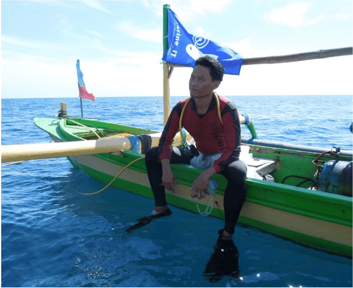 私が海に出たお話をします。ある日、和田雅昭先生から声をかけられて、マリンITに参加することになりました。最初の仕事は、ナマコ漁用のデジタル操業日誌のUIデザインでした。たまたまバスに乗ったような感覚で未来大に着任しましたが、今度は気がつけば船に乗っていたんです(笑)。
