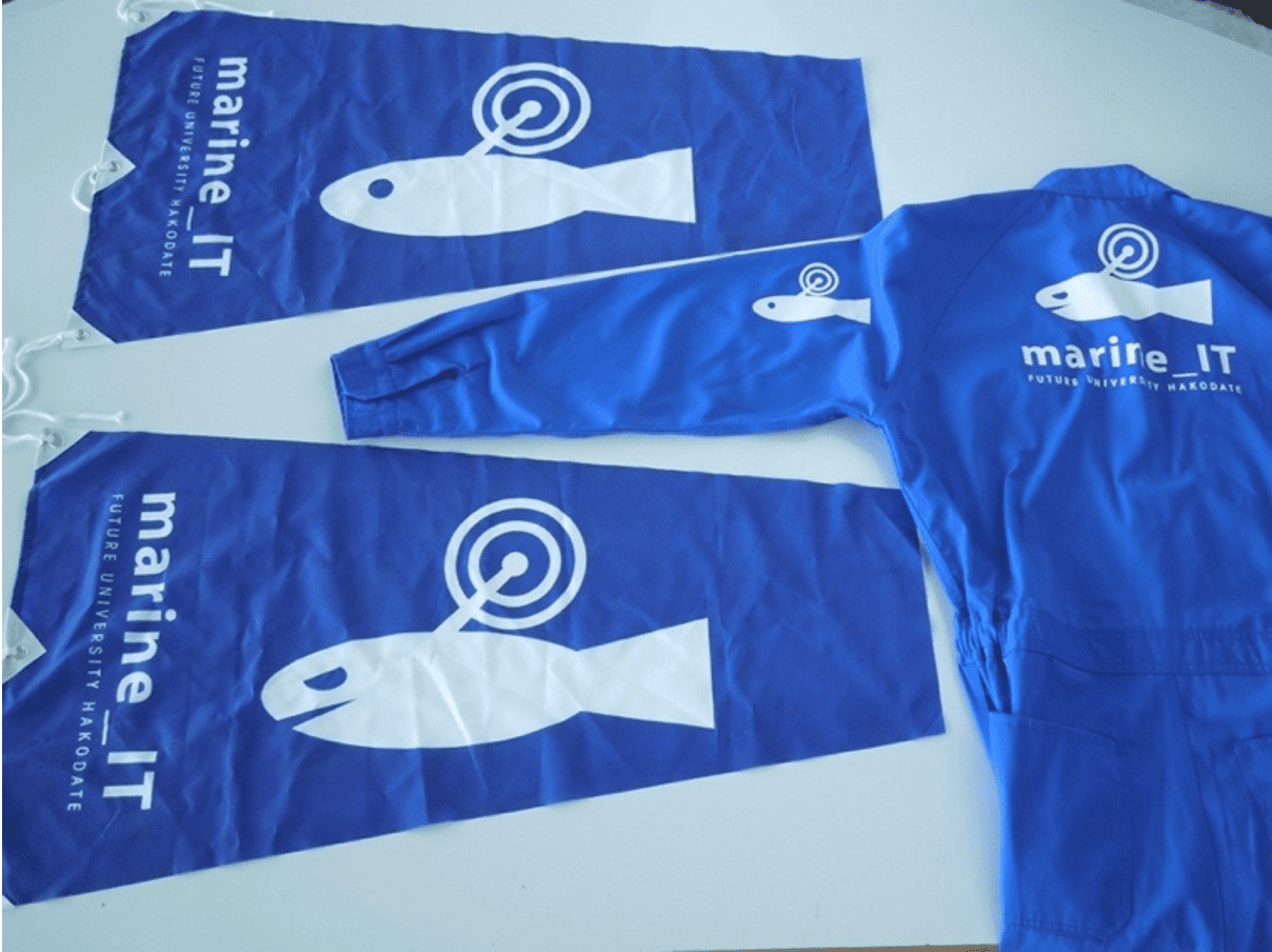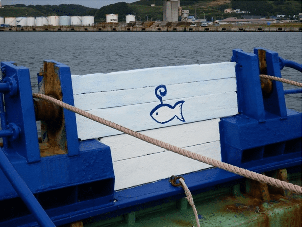 マリンITの船団旗もデザインしました。そのシンボルマークを気に入ってくれた漁師さんが自分の船にもペイントしてくれたのを見た時は嬉しかったですね。
