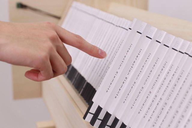 このInteraction Elementは、直感的な操作によって本からのフィードバックを体験できる本棚です。本に手をかざすと、そこを中心として、山なりに浮き出します。POP UP SHELFは本の探索に新たなフィードバックを与えるだけではなく、本を手に取るきっかけとなることを目指して製作したものです。 |