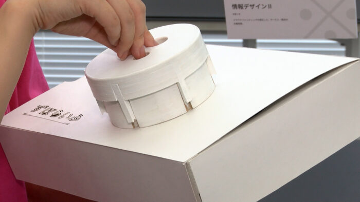 「情報デザインII」という授業の課題で、クラウドファンディングを想定した製品を企画提案しました。身近な課題解決をテーマにし、キッチンの排水口に備え付けるゴミを取るネットを、汚れた部分に一切触れることなく取り付けと取り外しができるプロダクトを制作しました。
