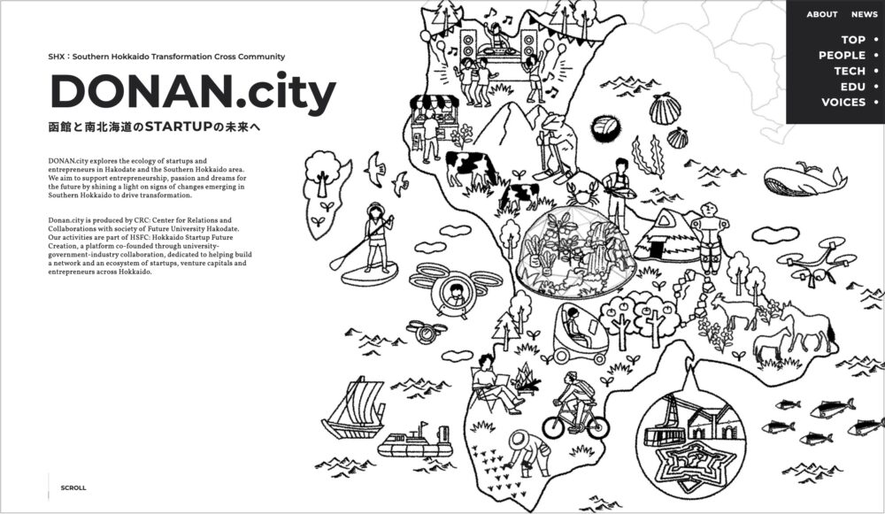 「DONAN.city」は、北海道に新しい産業や起業が生まれ続ける生態系(エコシステム)の形成を目指す大学・高専のネットワーク機関、 HSFC(Hokkaido Startup Future Creation:エイチフォース)*1の活動の一環として、 国立研究開発法人科学技術振興機構「START」事業 *1の予算を受けて制作しています。 同事業の活動は、(1) 大学教員等の起業活動支援、(2) 学生等へのアントレプレナーシップ教育、(3) 学内体制の整備、(4) 拠点都市のエコシステム形成発展支援 の4つの柱からなり、今回の取り組みはこの中の(4)に準じた活動で、拠点都市・函館を中心とする道南圏への貢献を目的としています。