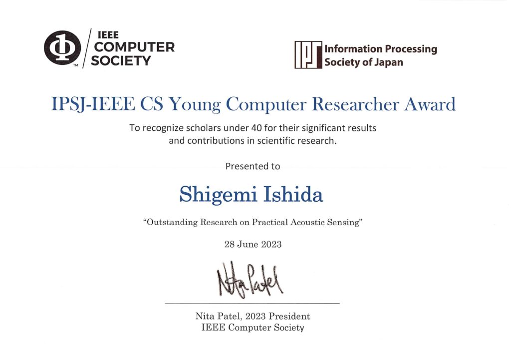 石田 繁巳准教授(情報アーキテクチャ学科)が、2023年IPSJ/IEEE Computer Society Young Computer Researcher Awardを受賞しました。