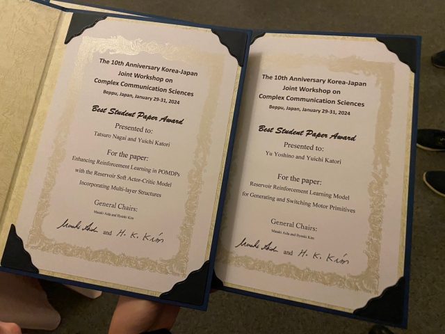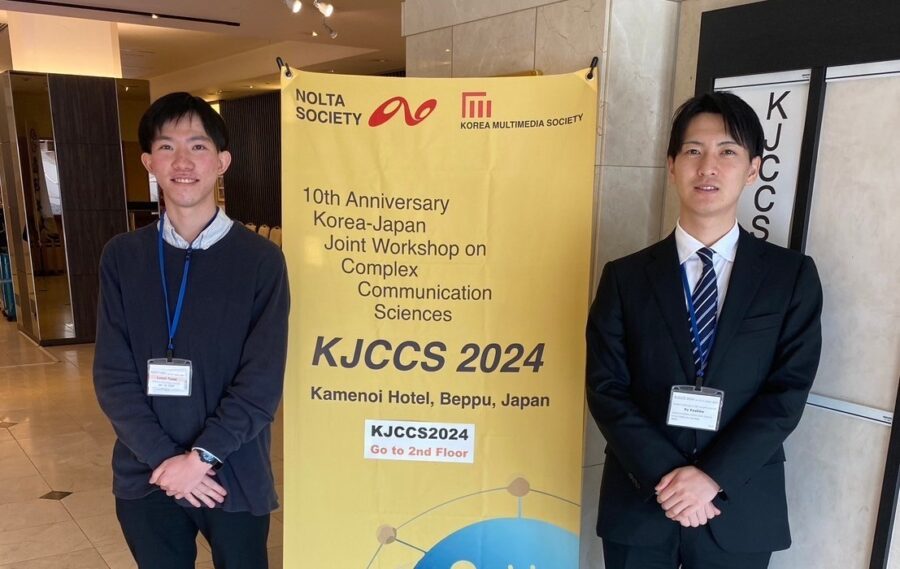 2024年1月29日から1月31日にかけて別府亀の井ホテルで開催されたKorea-Japan Joint Workshop on Complex Communication Sciences国際会議の10周年記念大会(KJCCS2024)において、博士(前期)課程2年の永井 達郎さんと吉野 遊さん(ともに複雑系情報科学領域、指導教員:香取 勇一教授)が、それぞれ“Best Student Paper Award”(最優秀学生論文賞)を受賞しました。