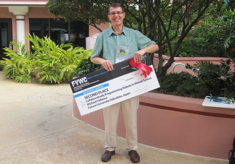 本学情報アーキテクチャ学科のマイケル・ヴァランス教授が、米国陸軍研究所シミュレーション・訓練技術センター主催のコンテスト「2012 Federal Virtual Worlds Challenge」の「Engaging Learning」分野で2等を受賞し、3000ドルの賞金を授与されました。