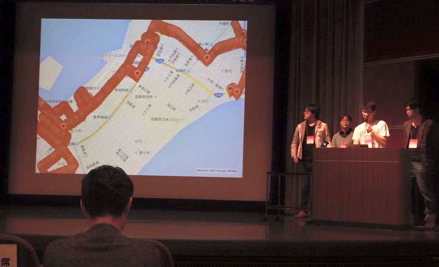 同コンテストは、全国各地の学生コンテスト等でNICT賞(起業家甲子園挑戦権)を獲得した学生チームが集まり、全国一を競う決勝大会で、今年度は2016年3月8日(火)コクヨホール(東京・品川)にて、11チームが参加して開催されました。Code for Hakodateは、函館市内の高校生、杉本涼さんと本学高度ICT領域の大学院生らが組織する任意団体で、道南・函館地域をプログラミングで活性化するための市民連携活動に取り組んでいます。全国のCode for団体の中でも若い世代が牽引するチームとして注目されています。今回は、Code for Hakodateが主要テーマの1つとして取り組んでいる公共交通情報プラットフォームの提案により受賞となりました。