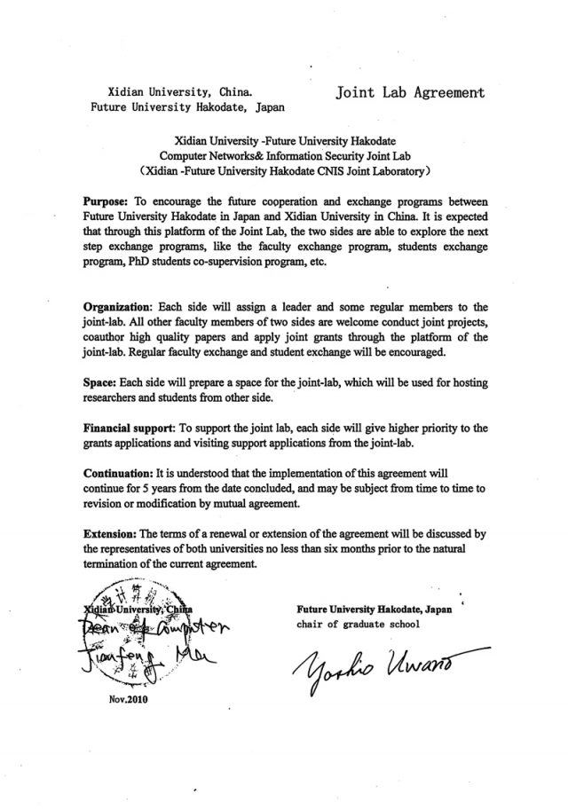 平成22年11月1日、中国の西安電子科技大学と学術交流協定を締結しました。海外の大学としては11校目、中国における大学とは初の交流協定であり、今後、活発な学生の交流や、教育資源の相互活用が期待されます。