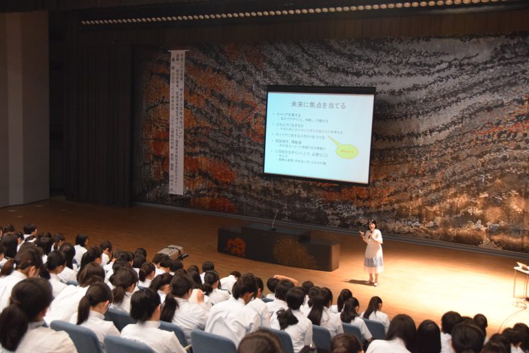 7月20日(木)に美馬のゆり教授が、郡山女子大学附属高等学校(福島県)にて「自分の未来、社会の未来をデザインする~理系女子的生き方のススメ~」と題し講演を行いました。