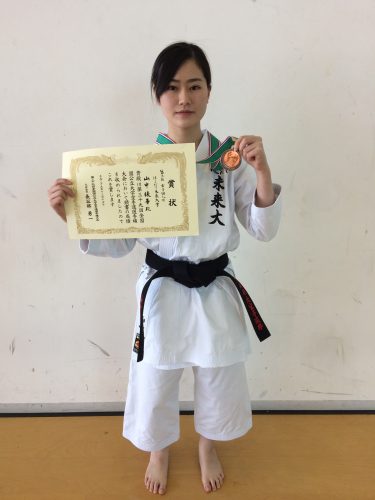 平成29年12月17日(日)に横浜市平沼記念体育館で開催された、第39回全国国公立大学空手道選手権大会において、本学空手道部(顧問: 髙木准教授)の山中綾華さん(学部1年生)が女子個人形で3位入賞を果たしました。