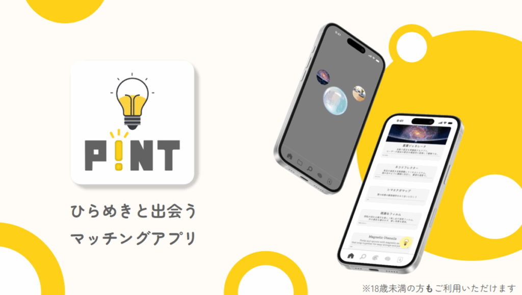 「P!NT」は、「人のアイディアと出会える新感覚SNS」をテーマに、ひらめいたアイディアを共有したり、2つのアイディアを合体して新しいアイディアを生み出すことができるサービスです。