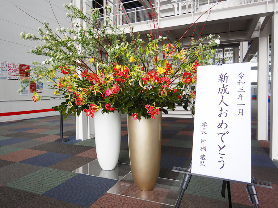 本学では新成人となる学生の皆さんをお祝いしたいという思いから、大学後援会のご支援のもと正面玄関