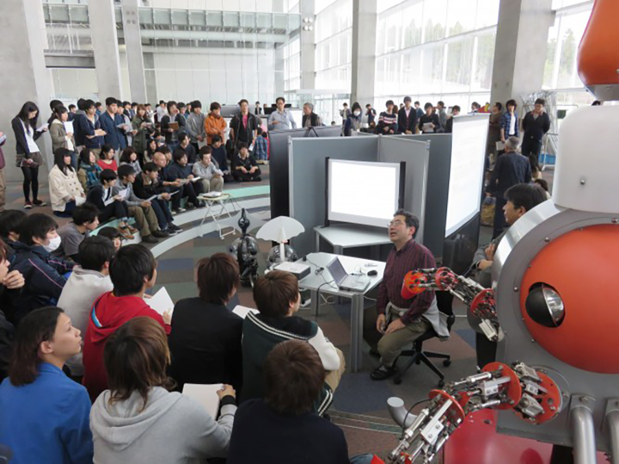 環境、経済、工学、情報、医療など、多様な分野が複雑に関連する現代社会では、多くの問題が明確な解のないまま、現在進行形で動いています。その複雑さゆえ、大学教育においては従来の講義や演習だけでは実社会への対応力には限界があるというのが実情です。そこで近年注目されているのが、学生自らが主体的に動き、考え、実践する「問題設定解決型学習法=プロジェクト学習」です。講義中心の教育から学生の自主的な学習を促す教育へ。大学教育改革の先駆的な試みとして、2000年の公立はこだて未来大学開学時からプロジェクト学習の導入を決めていました。導入から15年、3年次の必修科目であるプロジェクト学習は未来大学の根幹をなす授業となっています。