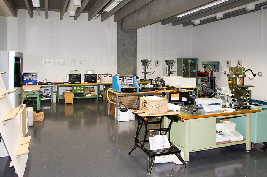 現在およそ15台のデジタル工作機のほか、ちょっとした工作をするための工具など、アイデアと道具を駆使していろいろなモノづくりをできる環境が整えられています。