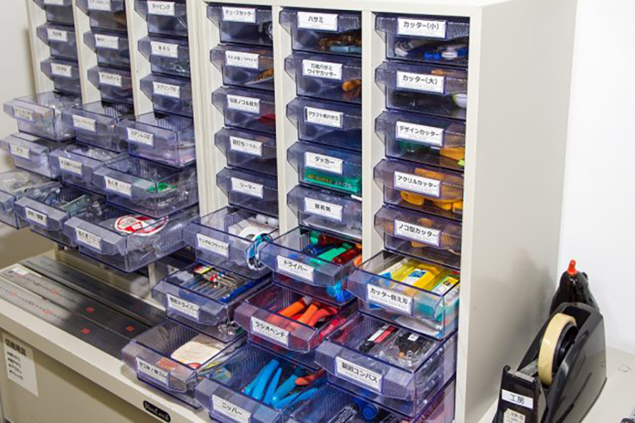 西野: 試作する学生に対しては、材料選択の段階から相談に乗ることもあります。使用する材料は各自で入手し持ち込むことが原則ですが、とりあえず工房の端材で試してもらうケースも多いですね。他にもネジや接着剤のような消耗品は、ある程度工房にストックがありますので、「あれこれ材料を買いそろえてきたけど、うまくいかなかった」という失敗は避けられるかもしれません。