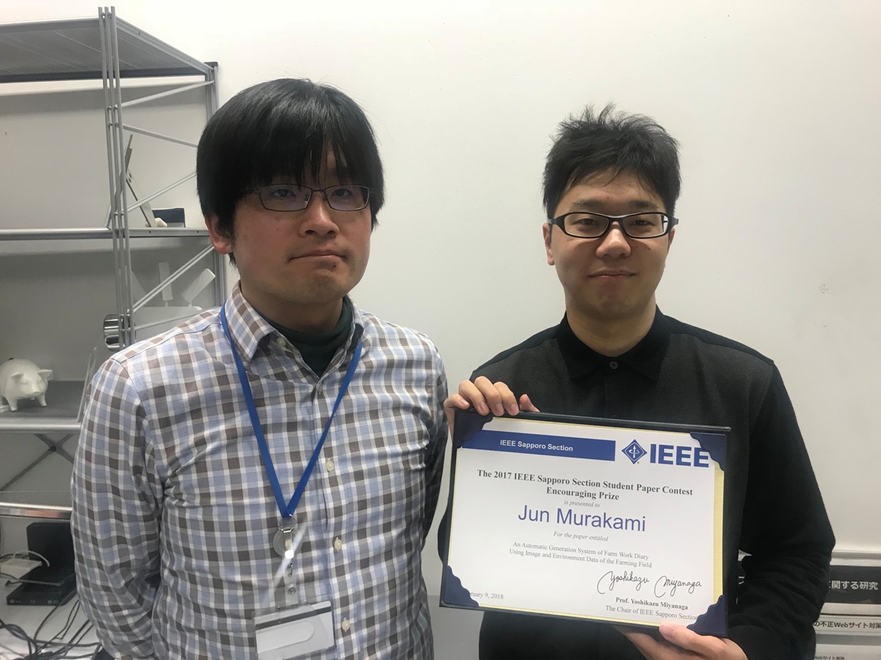 2017 IEEE Sapporo Section Student Paper Contestにおいて、村上 惇さん(情報アーキテクチャ領域 博士前期課程2年,指導教員:中村 嘉隆准教授,稲村 浩教授)がEncouraging Prizeを受賞しました。