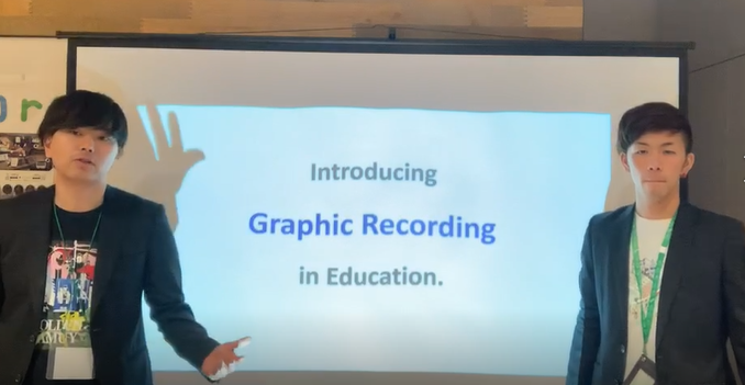 二人は「Introducing Graphic Recording in Education」というタイトルでグラフィックレコーディング手法の教育への導入についての発表を行いました。