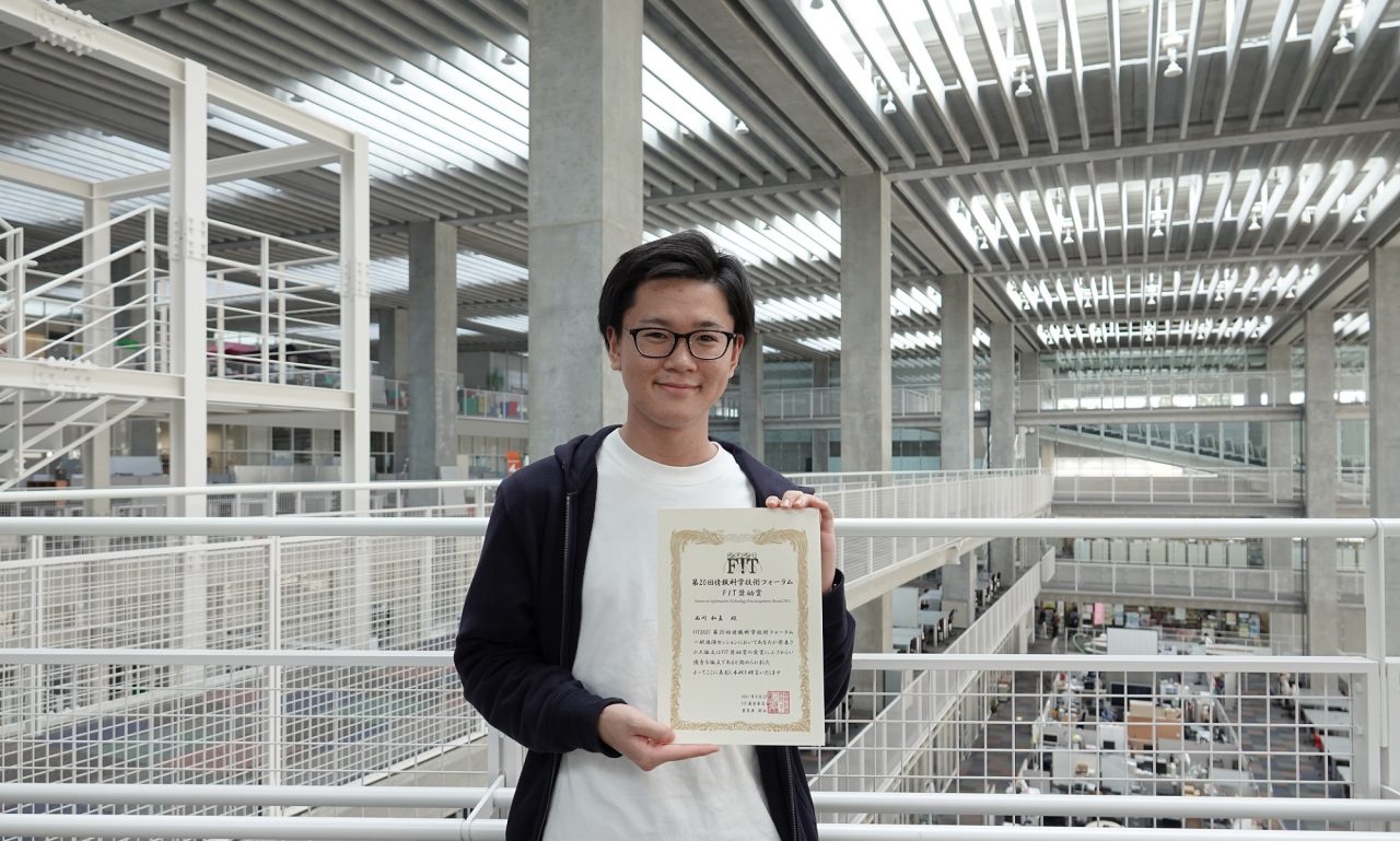 2021年8月25日~27日にオンラインで開催された「第20回情報科学技術フォーラム(FIT2021)」において、博士(前期)課程1年の西川和真さん(知能情報科学領域、指導教員:平田圭二教授)が、FIT奨励賞を受賞しました。西川さんは、オンデマンド実時間配車サービスSAVSにおける待ち時間分散を最適化する配車アルゴリズムを提案し、交通シミュレーションを行うことで、特定の条件において乗車要求の受理率が向上することを示しました。FIT奨励賞は、一般発表のセッションごとに優秀な発表を1件選び、贈呈される賞です。