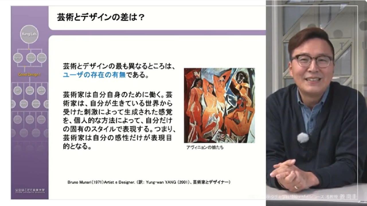 デザインって何?と聞かれたら、外観を格好良くしたり、美しくしたりすることを思う人が多いようですが、正確な答えを言える人は少ないかもしれません。この講義では、情報化社会におけるデザインの役割を、人間と機器との関係、特に幸せという人の「感性」の観点から、いくつかの例を通して考えます。それと共に、認知心理学・情報科学・デザインが融合した未来大学のデザイン教育の方向性も紹介しながら、人を幸せにする良いデザインについて楽しく探究します。