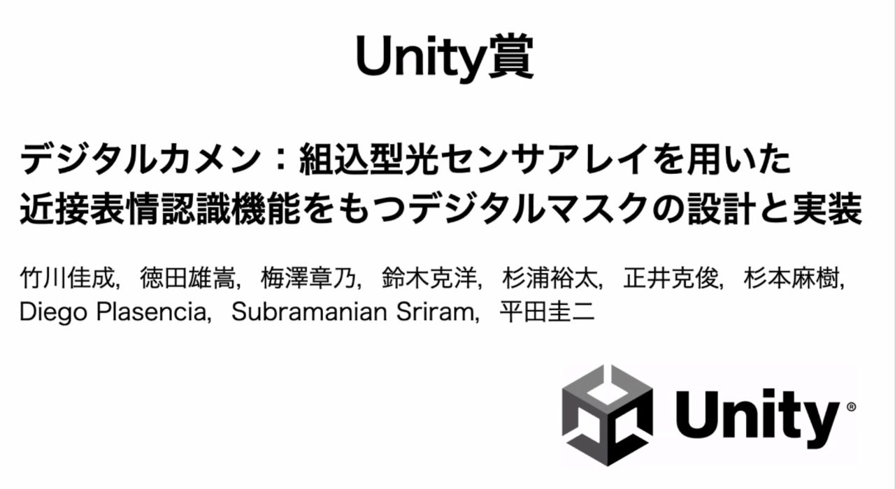 平田竹川研究室で開発してきた、顔の表情をアバターにリアルタイムに反映して表示するデジタルカメンが情報処理学会が主催するインタラクション2022にてUnity賞 を受賞しました。同賞はすべての口頭発表、インタラクティブ発表(デモ・ポスター)からUnityのポリシーに合致した優れた研究発表を表彰(Unityの使用の有無は問わない)します。