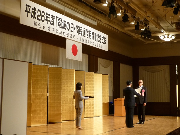 平成26年度電波の日・情報通信月間記念式典で、本学の和田雅昭教授が、「IT漁業の推進」の取り組みにより、情報通信月間北海道総合通信局長表彰を受賞しました。
