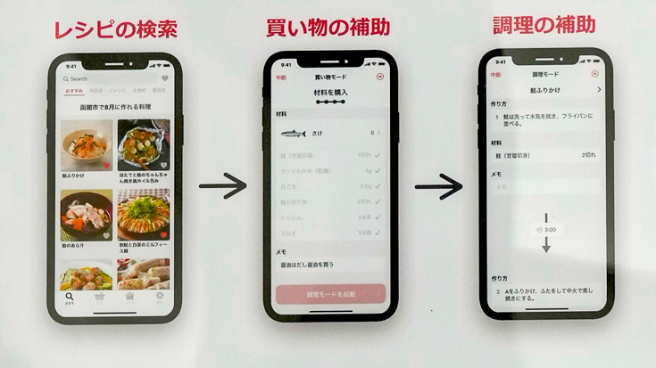 対象は北海道在住の方で、日常的な買い物先でいつもは食べないような珍しい魚に挑戦してもらったり、頻繁に食べていても調理法に変えて新しい味の発見につながればと思っています。 そんな挑戦のハードルを下げるために必要な情報は何かを考え、調理に必要な調味料、かかる時間などを案内し、レシピ考案から買い物、調理までをまとめてサポートするように工夫しました。