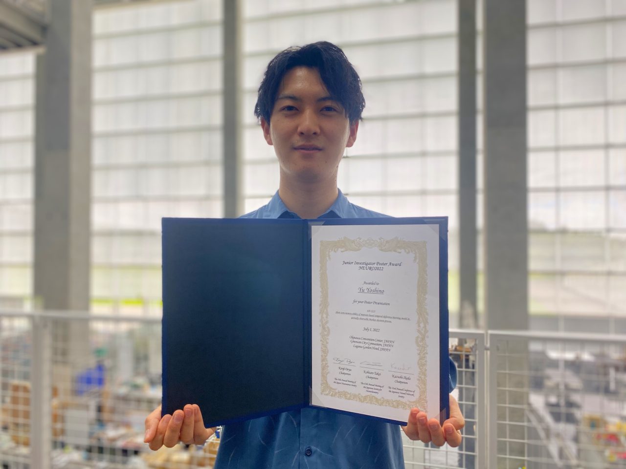 博士(前期)課程1年の吉野遊さん(複雑系情報科学領域、指導教員:香取勇一教授)が、2022年6月30日から7月3日にかけて沖縄県で開催された国際会議NEURO2022において、非線形力学系を利用した強化学習モデルに関する下記の発表で“Junior Investigator Poster Award NEURO2022″を受賞しました。