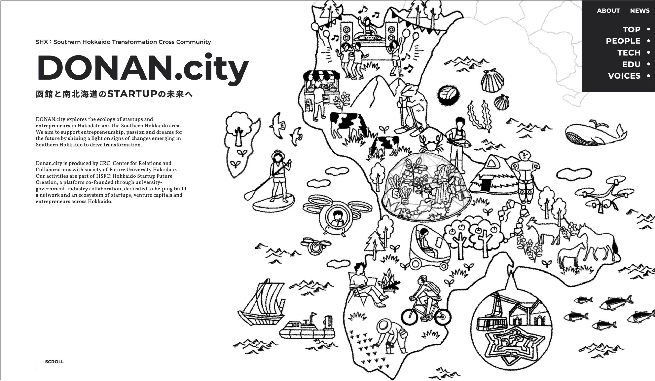 「DONAN.city」は、北海道に新しい産業や起業が生まれ続ける生態系(エコシステム)の形成を目指す大学・高専のネットワーク機関、 HSFC(Hokkaido Startup Future Creation:エイチフォース)*1の活動の一環として、 国立研究開発法人科学技術振興機構「START」事業 *1の予算を受けて制作しています。 同事業の活動は、(1) 大学教員等の起業活動支援、(2) 学生等へのアントレプレナーシップ教育、(3) 学内体制の整備、(4) 拠点都市のエコシステム形成発展支援 の4つの柱からなり、今回の取り組みはこの中の(4)に準じた活動で、拠点都市・函館を中心とする道南圏への貢献を目的としています。