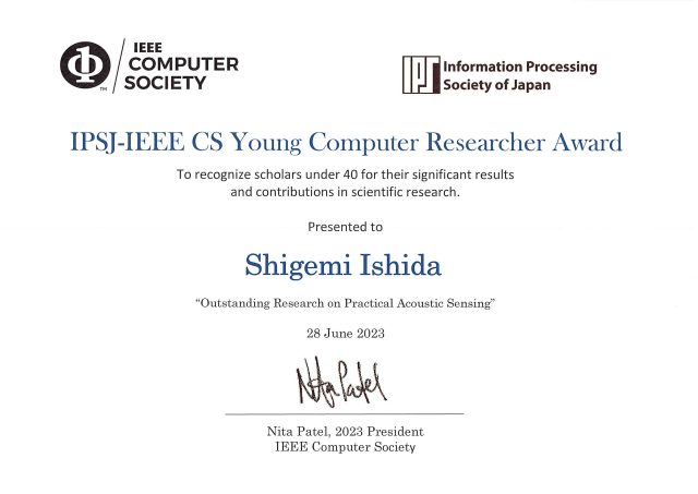 石田繁巳准教授(情報アーキテクチャ学科)が、2023年IPSJ/IEEE Computer Society Young Computer Researcher Awardを受賞しました。