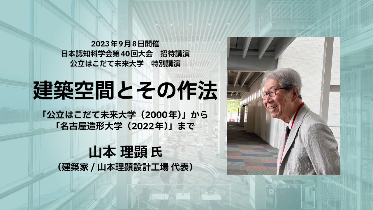 2023年9月8日に、日本認知科学会第40回大会招待講演ならびに公立はこだて未来大学特別講演として、本学の校舎を設計された山本理顕氏(山本理顕設計工場 代表)を本学にお招きし、講演いただきました。