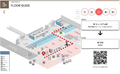 運営グループ、スポンサー企業、鈴木恵二学長をはじめとする教員グループが審査の結果、優勝を手にしたのは「廃人X」チームの「Route√X」。本学の複雑な階層構造を、わかりやすい立体地図で表し、目的地を簡単に探せるようにしました。目的地までのルートがひと目でわかり、QRコードをスキャンすればスマホでもルート確認が可能です。ダウンロードもインストールも不要なので、その場ですぐに使え、来客にピッタリのシステムといえます。