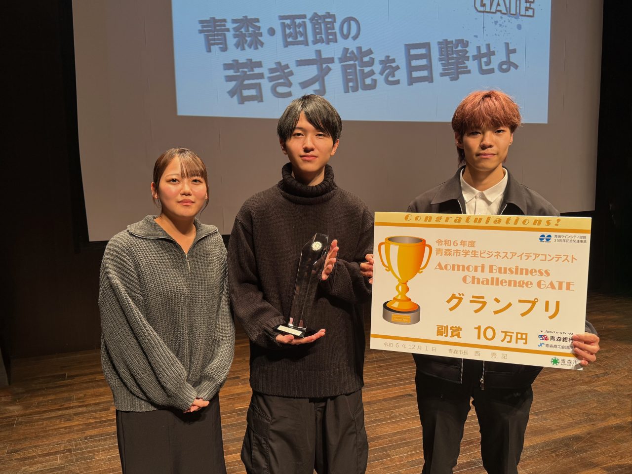 2024年12月1日、青森市ねぶたの家ワ・ラッセで開催された「令和6年度青森市学生ビジネスアイデアコンテスト(Aomori Business Challenge GATE)」において、本学の「おさかな日和」チームがグランプリを受賞しました。