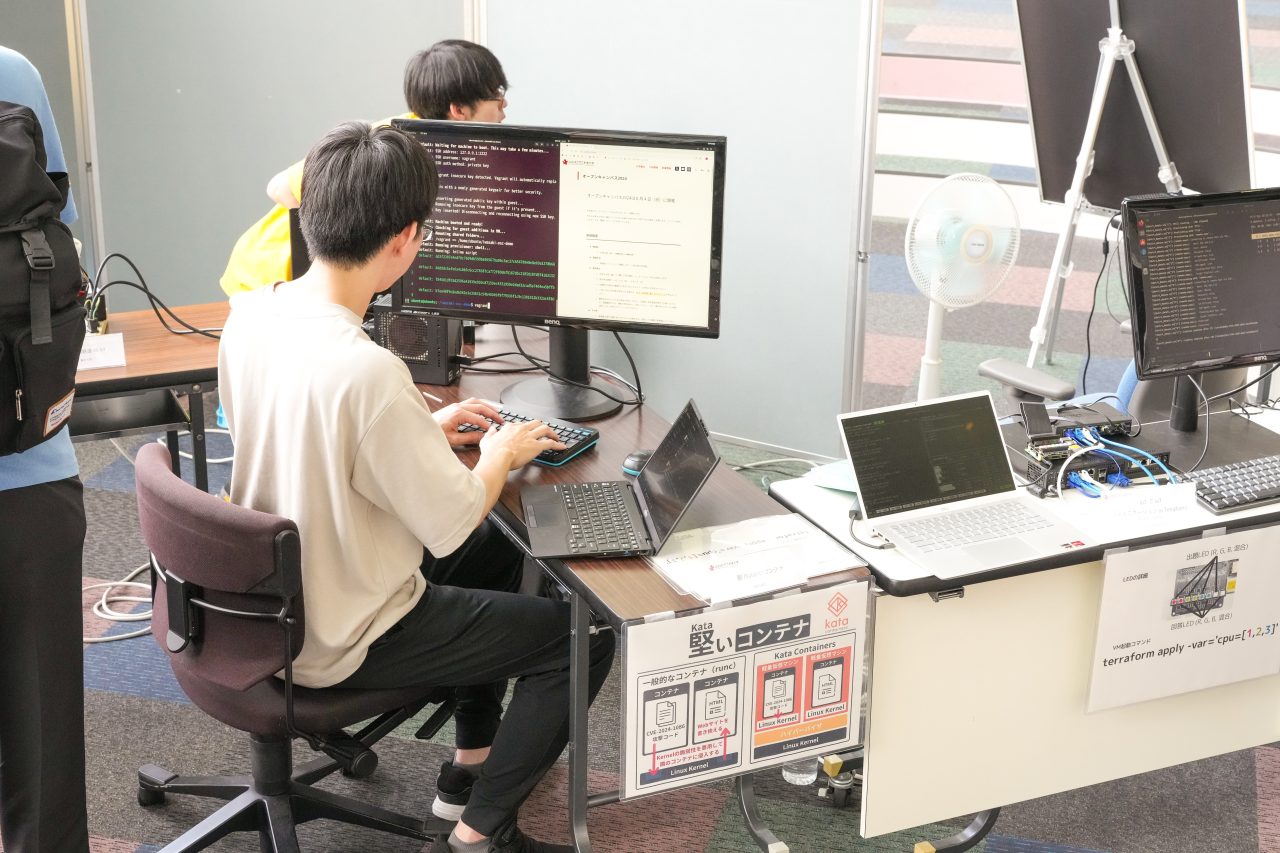 今回の展示では、Linuxの脆弱性を利用し、オープンキャンパスのウェブページの語尾を関西弁に書き換えるといったユニークな試みを行っています。普段は意識しないOSやネットワーク層など、未来大学で唯一低レイヤのソフトウェアを扱う研究室として、他とは違う雰囲気を感じてみてください。