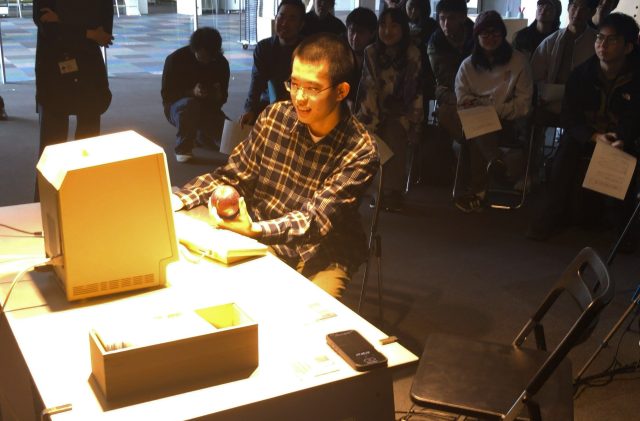 イベント終了後は、修士2年生の田中春樹さんがインストラクターとなり、Macintosh Plusを多くの方々に体験してもらいました。来場者は最後まで途切れることはなく、入れ替わり立ち替わり操作を楽しみ、「授業として続けてほしい」とコメントを残した学生もいました。