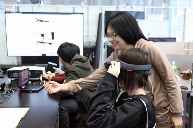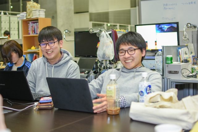 竹川: 未来大を表す言葉に「オープンスペース・オープンマインド」があります。この言葉通り、建物の構造がオープンな環境にあるので、隣の研究室が何をやっているのか分かります。別の研究室の学生と情報交換をしたり新しい技術を共有したり、協力し合っているようです。他の大学では研究室が壁で仕切られていて、隣の研究室でどんなことをしているのか伝わりにくい。