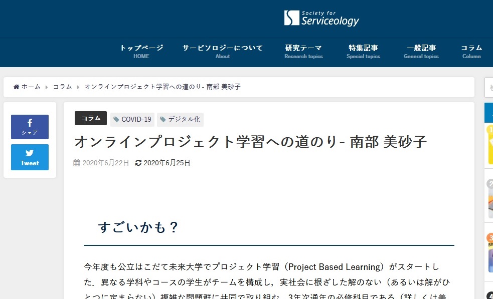 サービス学会によるWebマガジン「サービソロジー」に南部美砂子准教授が執筆したコラムが掲載されました。