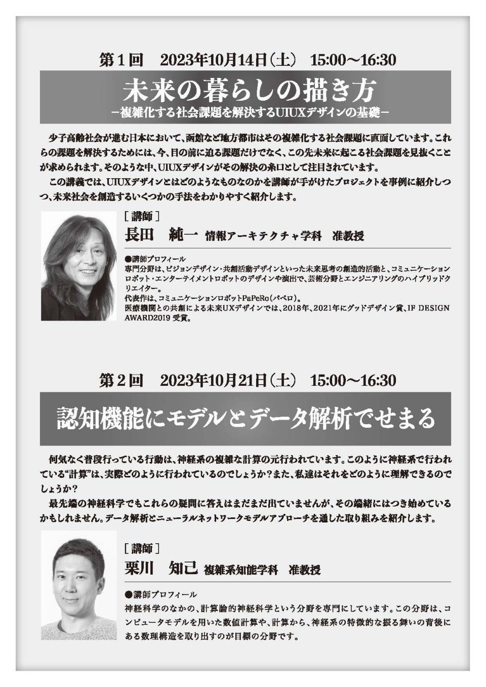 両講座ともオンライン(Zoom)で開催します。定員100名。