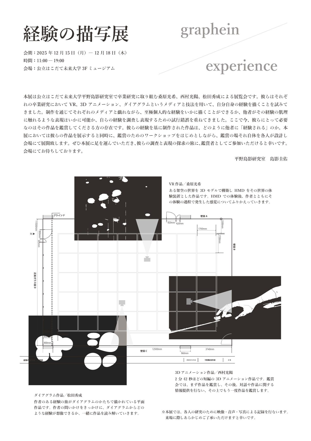 本展は、公立はこだて未来大学 平野・島影研究室で卒業研究に取り組む学生による展覧会です。