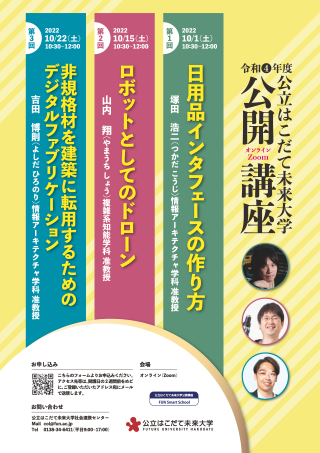 令和4年度公開講座を開講(10/1,10/15,10/22)終了2022年10月1日 ~ 22日 -