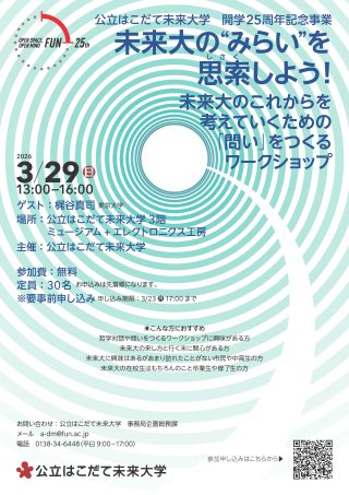 開学25周年記念事業『未来大の“みらい”を思索しよう!ーー未来大のこれからを考えていくための「問い」をつくるワークショップ』(3/29)開催日2026年3月29日 -