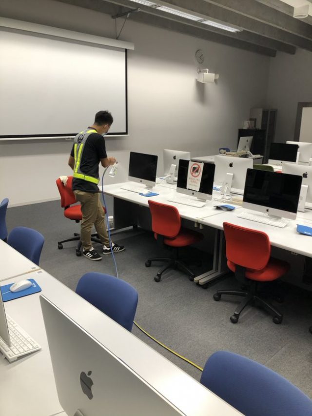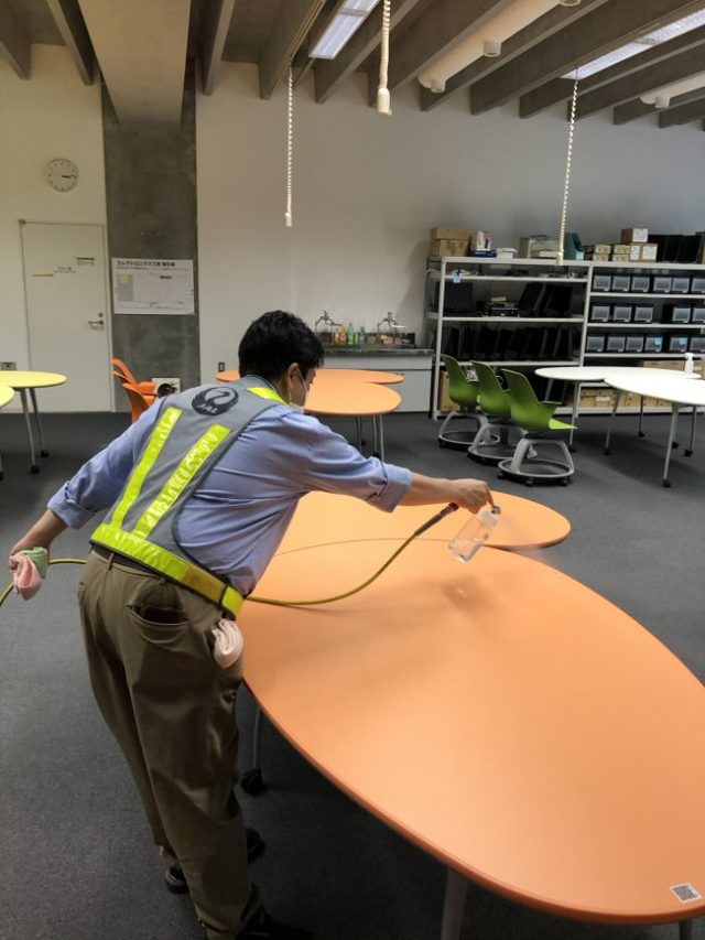 この度、大学校舎内における感染症対策として、各講義室や共用部に抗ウイルス・抗菌コーティングを施工しました。