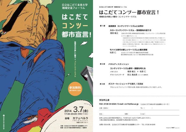 公立はこだて未来大学地域交流フォーラム 「はこだてコンツー都市宣言! ―情報社会の新しい観光=コンテンツツーリズム」を開催しました