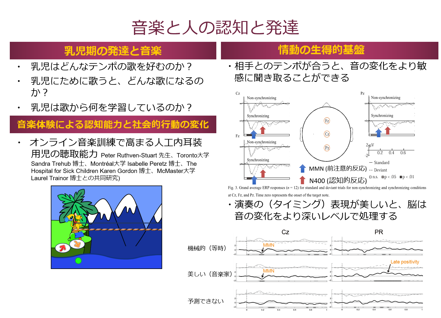 - 人工内耳を装用する難聴児と健聴児を対象にした、音楽と音声言語の知覚、表出の発達