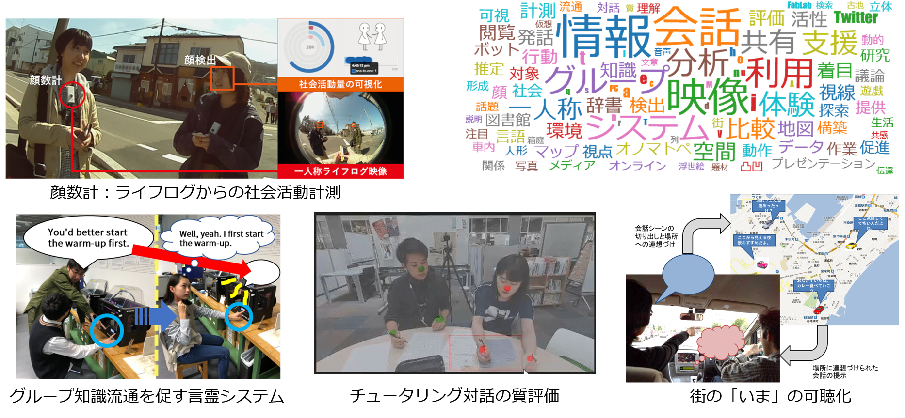 人工知能、ヒューマンインタフェース、メディア処理の理論と技術を基盤に、人と知的人工物の間のインタラクションの理解とデザインに関わる研究を行います。