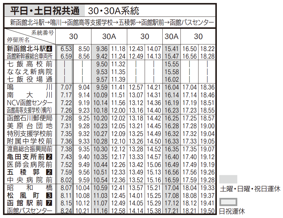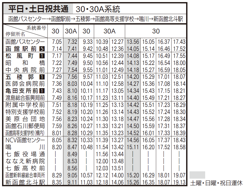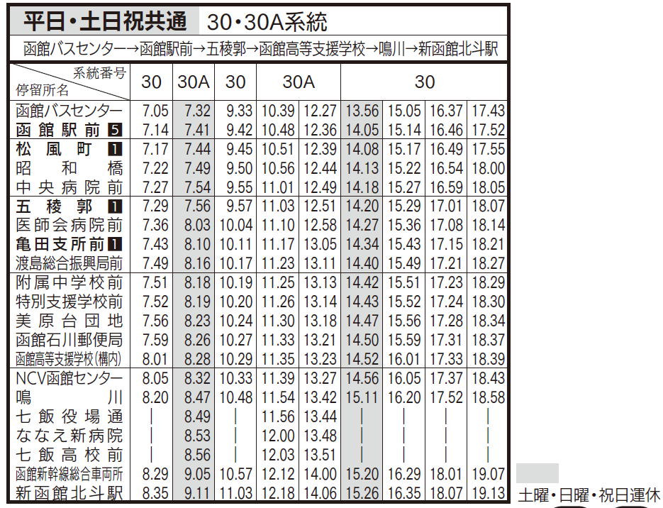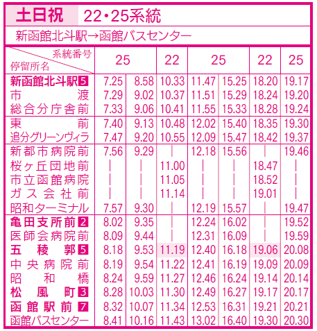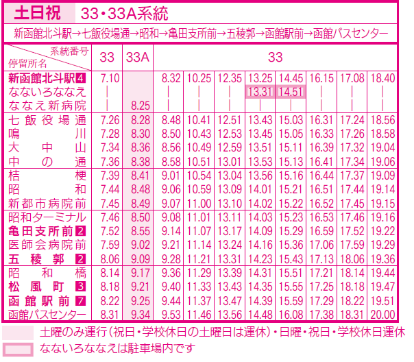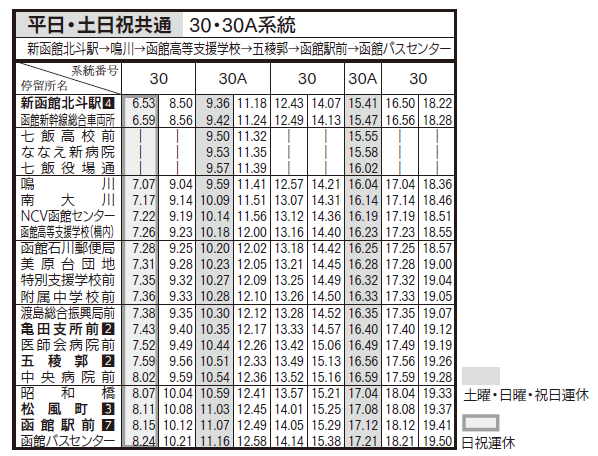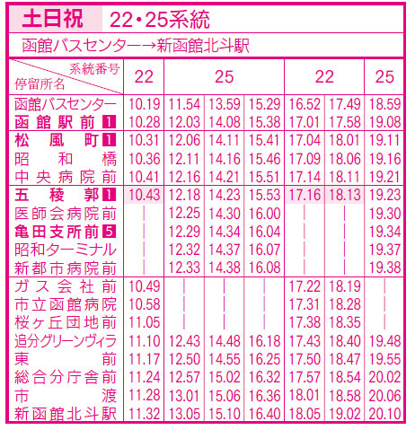 土日祝ダイヤ(亀田支所、五稜郭、函館駅前行き)