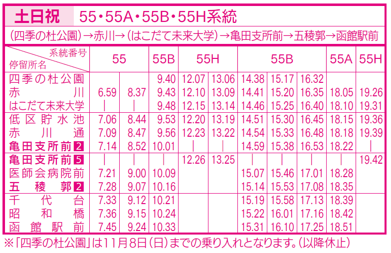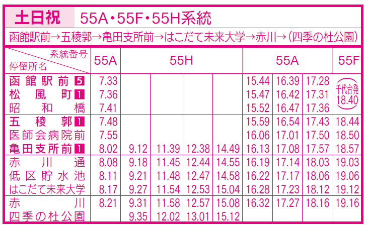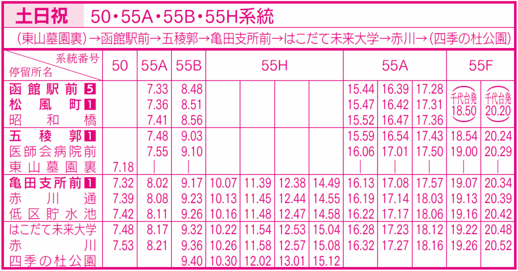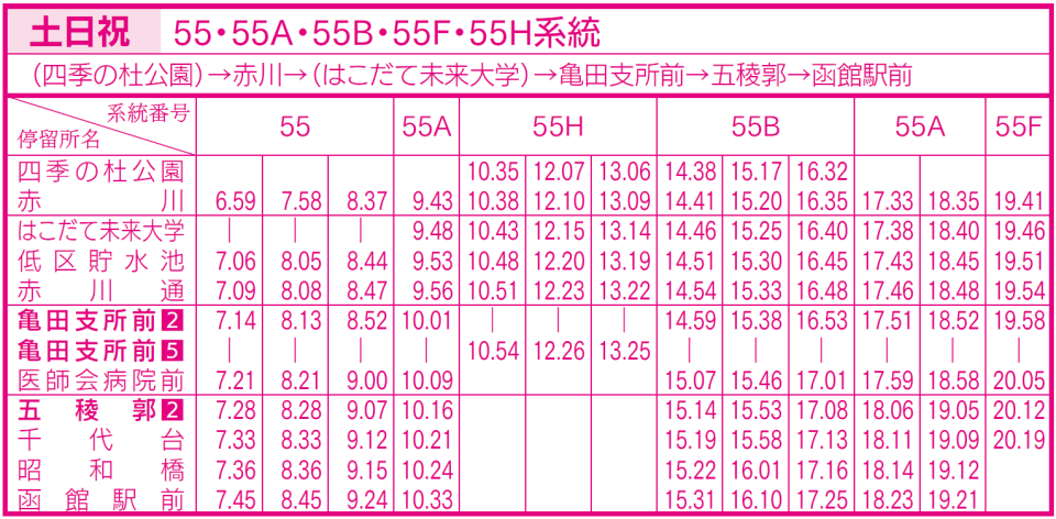 土日祝ダイヤ(亀田支所、五稜郭、函館駅前行き)